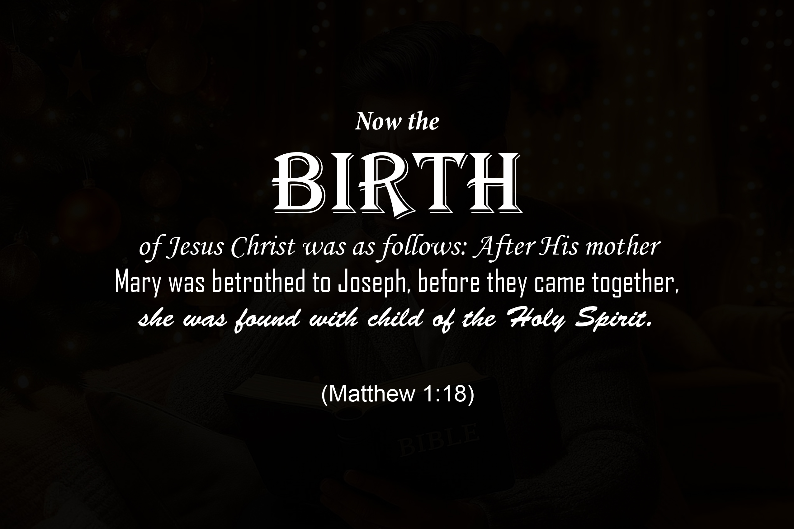 Now the birth of Jesus Christ was as follows: After His mother Mary was betrothed to Joseph, before they came together, she was found with child of the Holy Spirit.